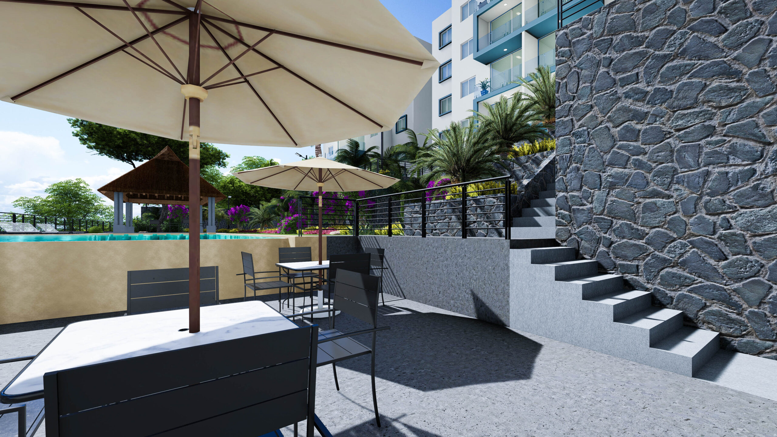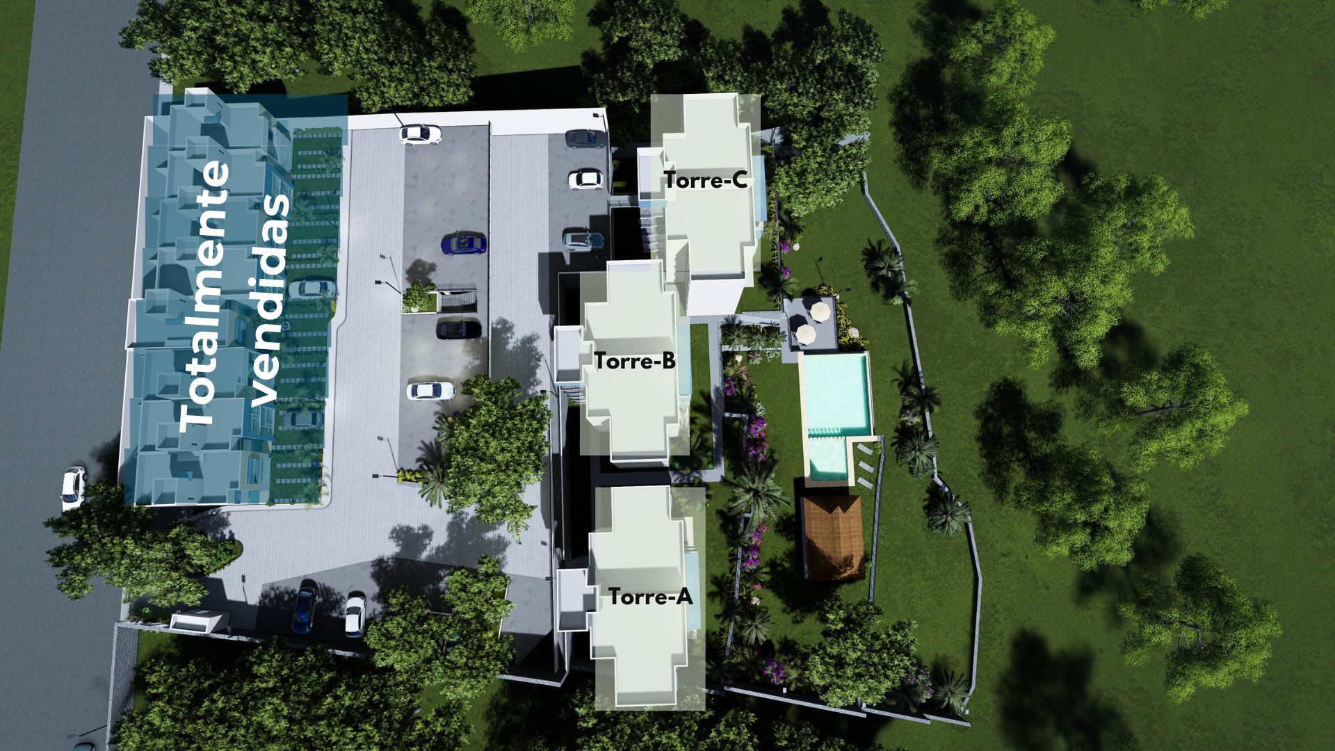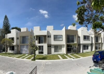 Un condominio de 8 casas habitación y 30 departamentos divididos en 3 torres, con una hermosa área común con jardín, alberca y palapa.